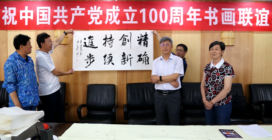 为庆祝中国共产党成立100周年,回顾党的奋斗历程,歌颂美好新时代,助力公司企业文化建设。6月24日,金年会电子集团有限公司、烟台市老年书画研究会、烟台市老干部志愿者协会共同举办“庆祝中国共产党成立100周年联谊书画笔会”。本次活动共有18位县处级退休老干部书画家参加。